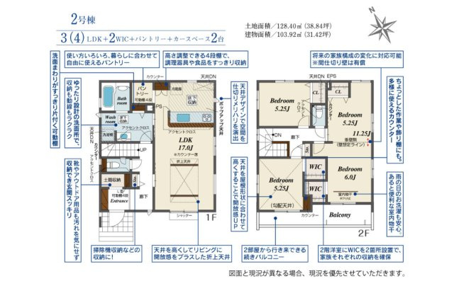 【外観】モダンなツートン外観が目を引く新邸 。南道路に面し、並列2台駐車可能なゆとりのカースペースを確保しました 。耐震等級3やパントリーなど、機能美と安心を兼ね備えた長期優良住宅で、豊かな日常が始まります。
